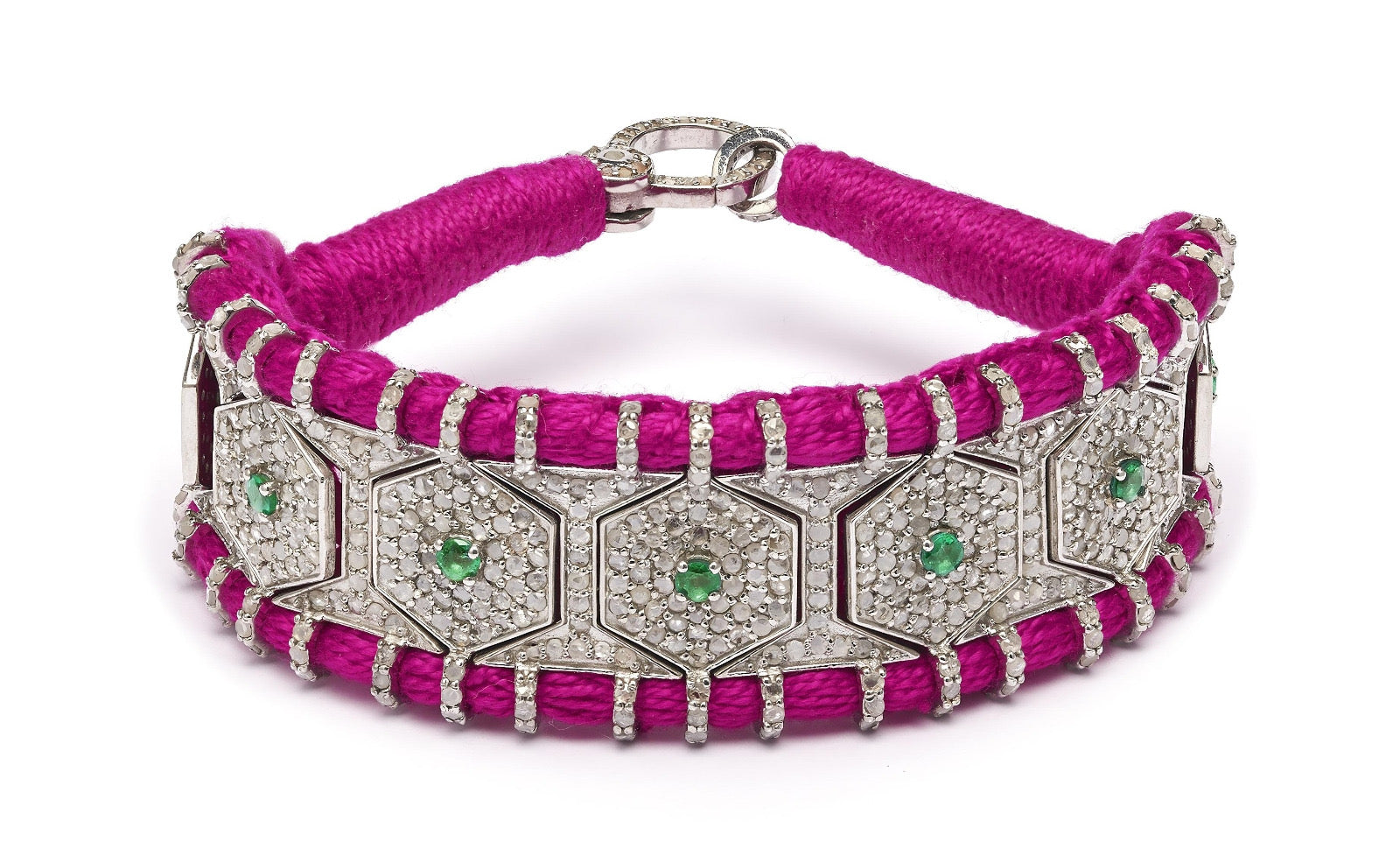 Salar - Pink Thread Pavé Diamond and Emerald Bracelet