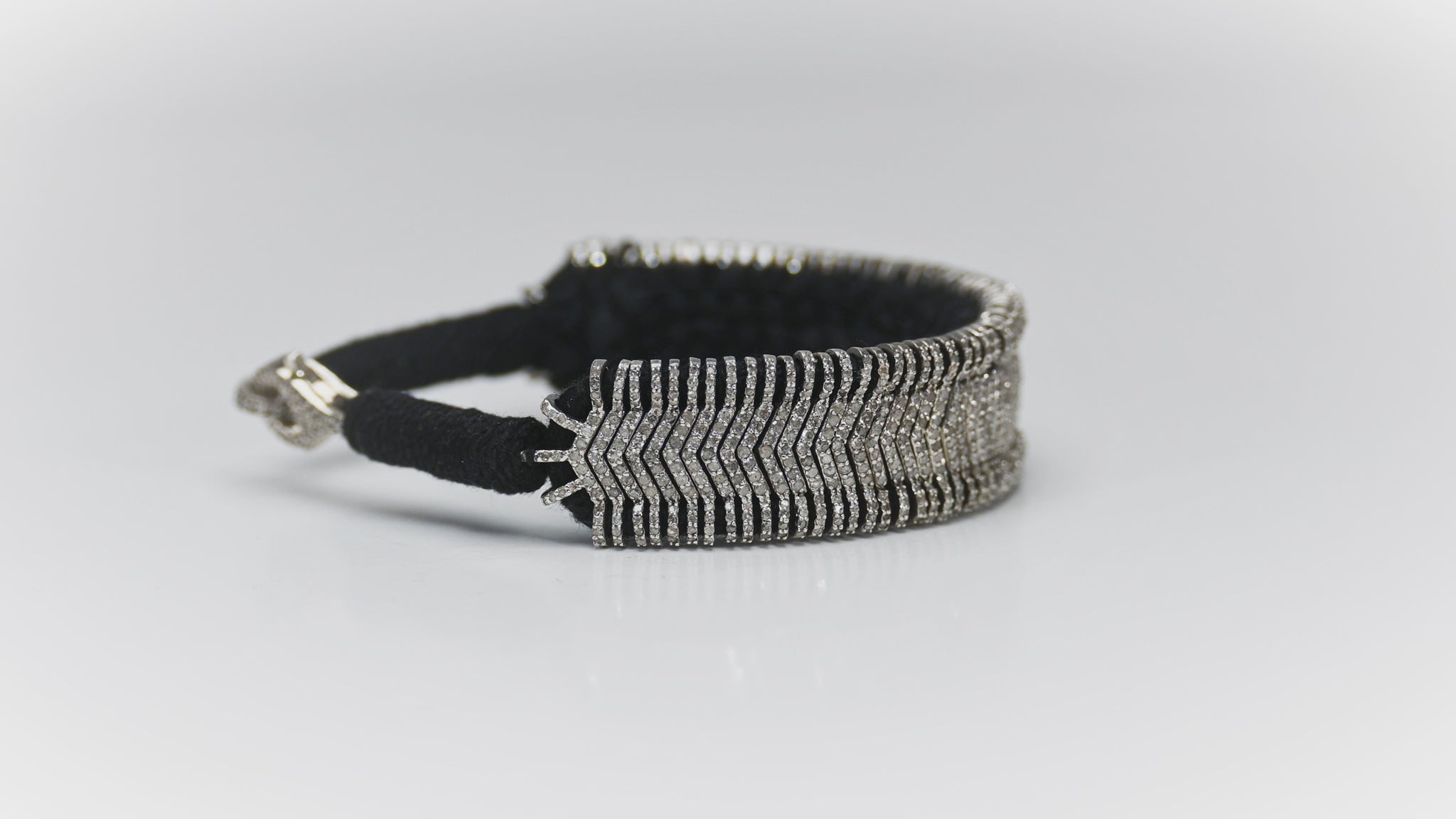 This striking piece features 4.41 carats of brilliant diamonds set against black thread, bringing edge and sparkle to contrast with the crisp white that defines island life. From beach clubs to countryside escapes, this bracelet embodies the freedom to be everything at once. Each piece is meticulously woven by hand using traditional techniques.