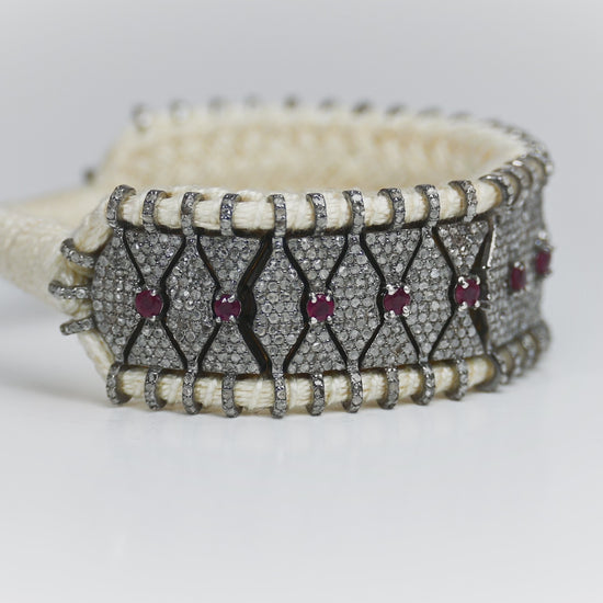 Skoura- Sand Thread Pavé Diamond and Ruby Bracelet